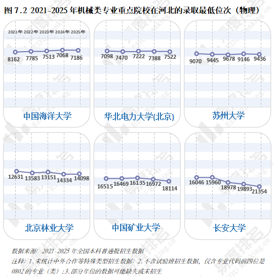 985、各校波动非常值较少,全体不变。以省为例,选择招生打算波动较小的六所高校进行展现,能够看出各校登科位次均未呈现大的波动,当然,各校环境有所分歧,中国海洋大学小幅上涨,华北电力大学()、姑苏大学极其平稳,中国矿业大学和长安大学正在缩招的环境下位次仍然呈现下滑。