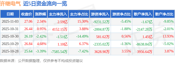11月3日的资金流向数据方面,从力资金净流入2。59亿元,占总成交额15。3%,逛资资金净流出9231。52万元,占总成交额5。45%,散户资金净流出1。67亿元,占总成交额9。85%。
