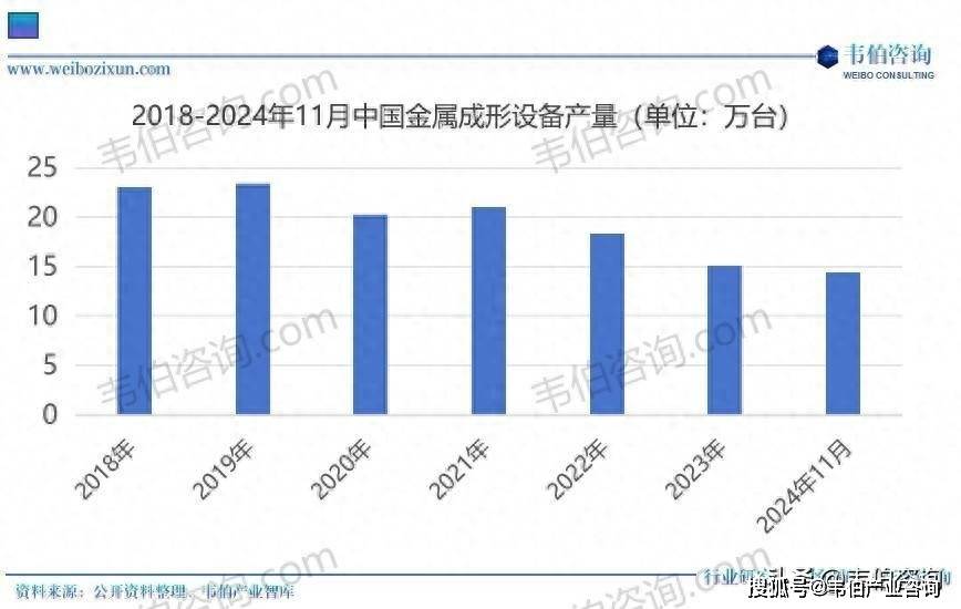 近年来,我国金属成形设备产量根基连结不变。2018年和2019年全年金属成形设备产量别离为23。0万台和23。4万台;因为制制业开工率下降,导致2020年中国金属成形设备累计产量略有下降为20。2万台;2021年,中国金属成形设备产量回升至21万台。