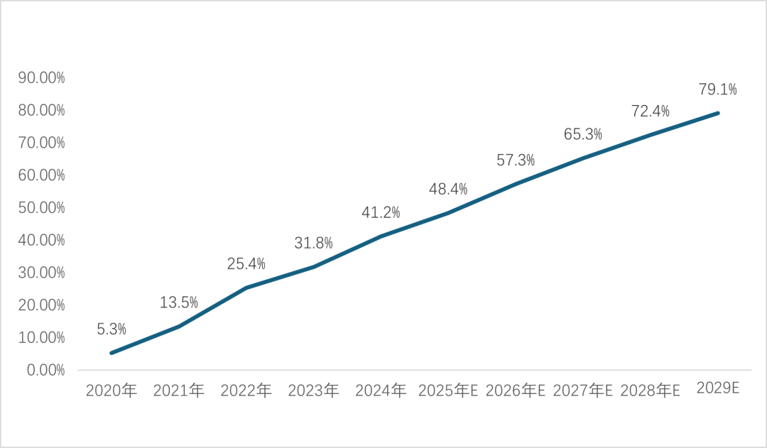 车载智能网联处理方案凡是由硬件、软件及办事三部门形成。硬件层面次要包含通信模块、车载联网节制单位及其他硬件设备,软件层面则涵盖车载收集平台及其他相关办事。跟着智能网联汽车产量持续增加,全球及中国车载智能网联处理方案的市场规模正不竭扩大,估计将由2024年的人平易近币5,274亿元及人平易近币1,153亿元增加至2029年的人平易近币13,339亿元及人平易近币4,449亿元。