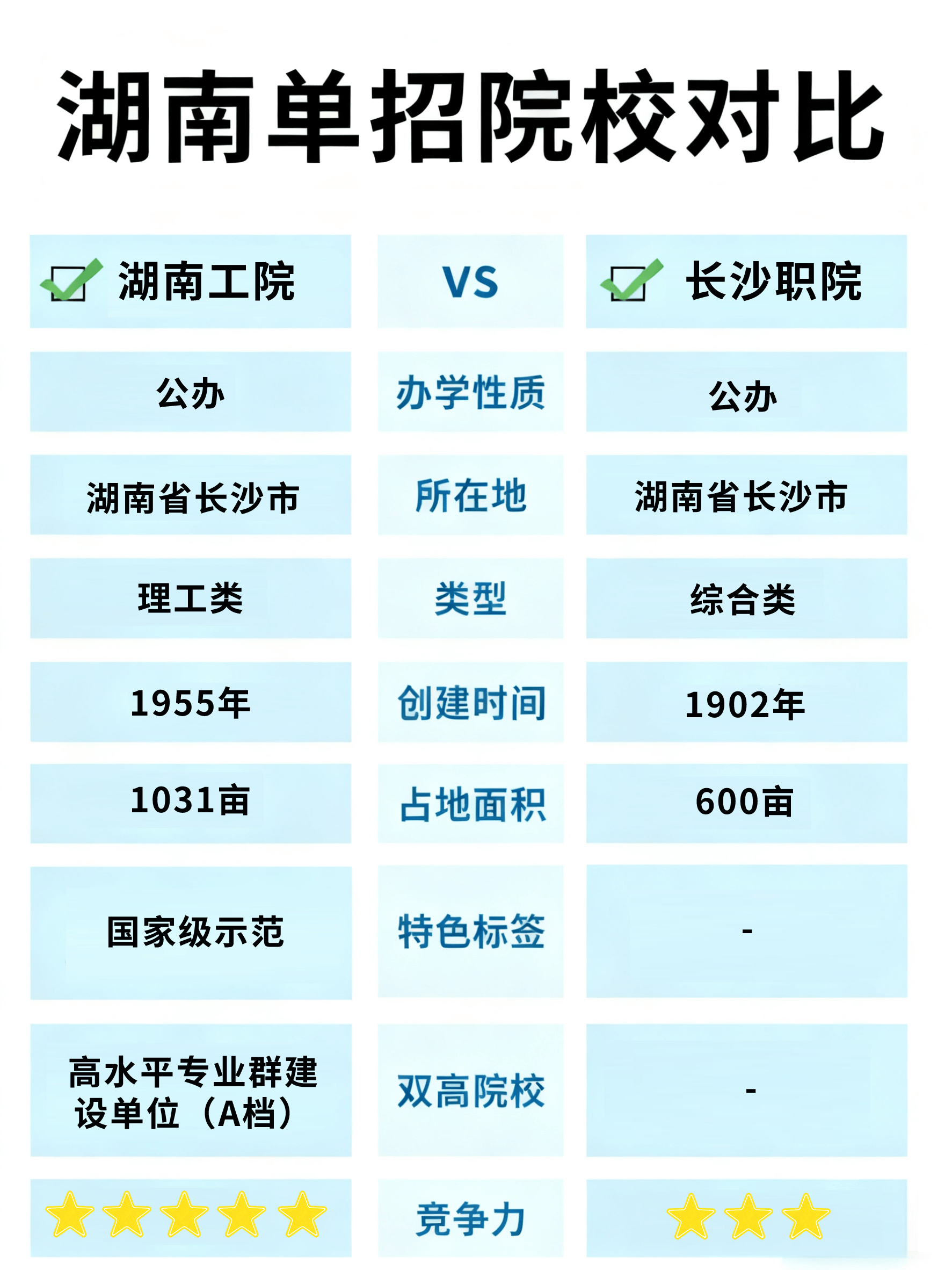 跟着高职单招热度攀升,公办院校成为考生合作的核心。正在长沙,湖南工业职业手艺学院(湖南工院)取长沙职业手艺学院(长沙职院)凭仗深挚的办学实力和区位劣势,成为抢手选择。本文从度解析两校差别,为考生供给科学择校参考。